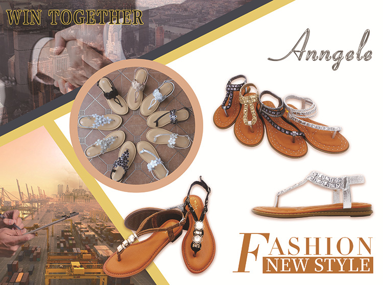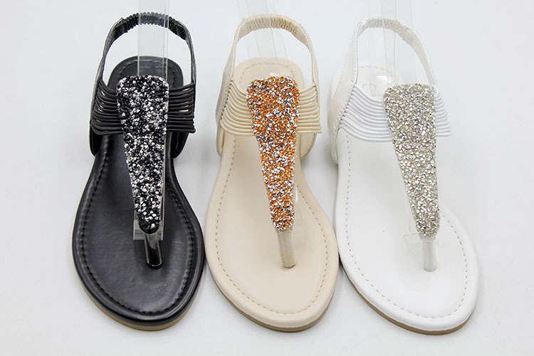 Comercio exterior transfronterizo de verano nuevas sandalias planas de Europa y América más el tamaño de una correa sandalias de diamantes Flip-toe sandalia zapatos de mujer